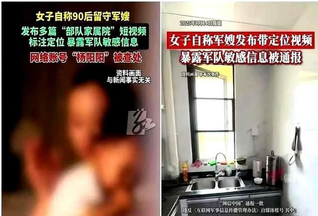 还有“杨阳阳”案,根据官方通报可以得知,该女子自称“90后留守军嫂”,为了获取流量,连续几天拍摄部队家属院门口区域,将营区情况拍摄下来,甚至精确标注地理位置,多次暴露军队敏感信息。